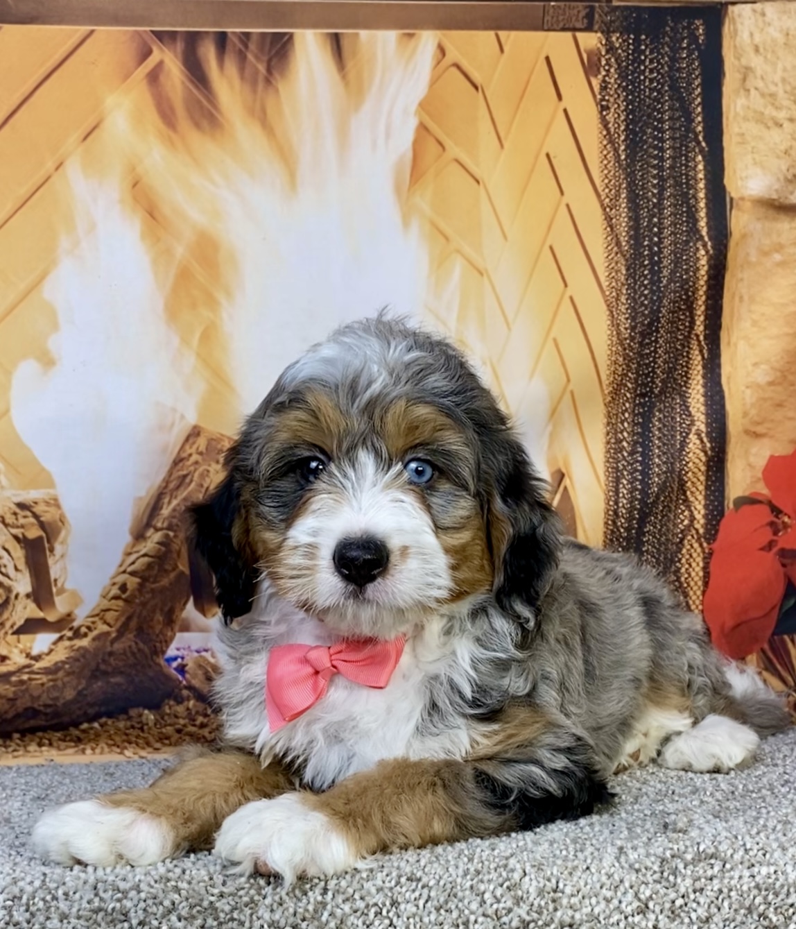 Meet this adorable Mini-Bernedoodle, a tiny bundle of joy with a delightful personality and a coat as soft as a cloud. Blending the intelligence and hypoallergenic traits of a Poodle with the friendly nature and stunning colors of a Bernese Mountain Dog, this pup is the perfect companion for any household. Ms. Ina promises endless love and happiness to those lucky enough to bring him home.