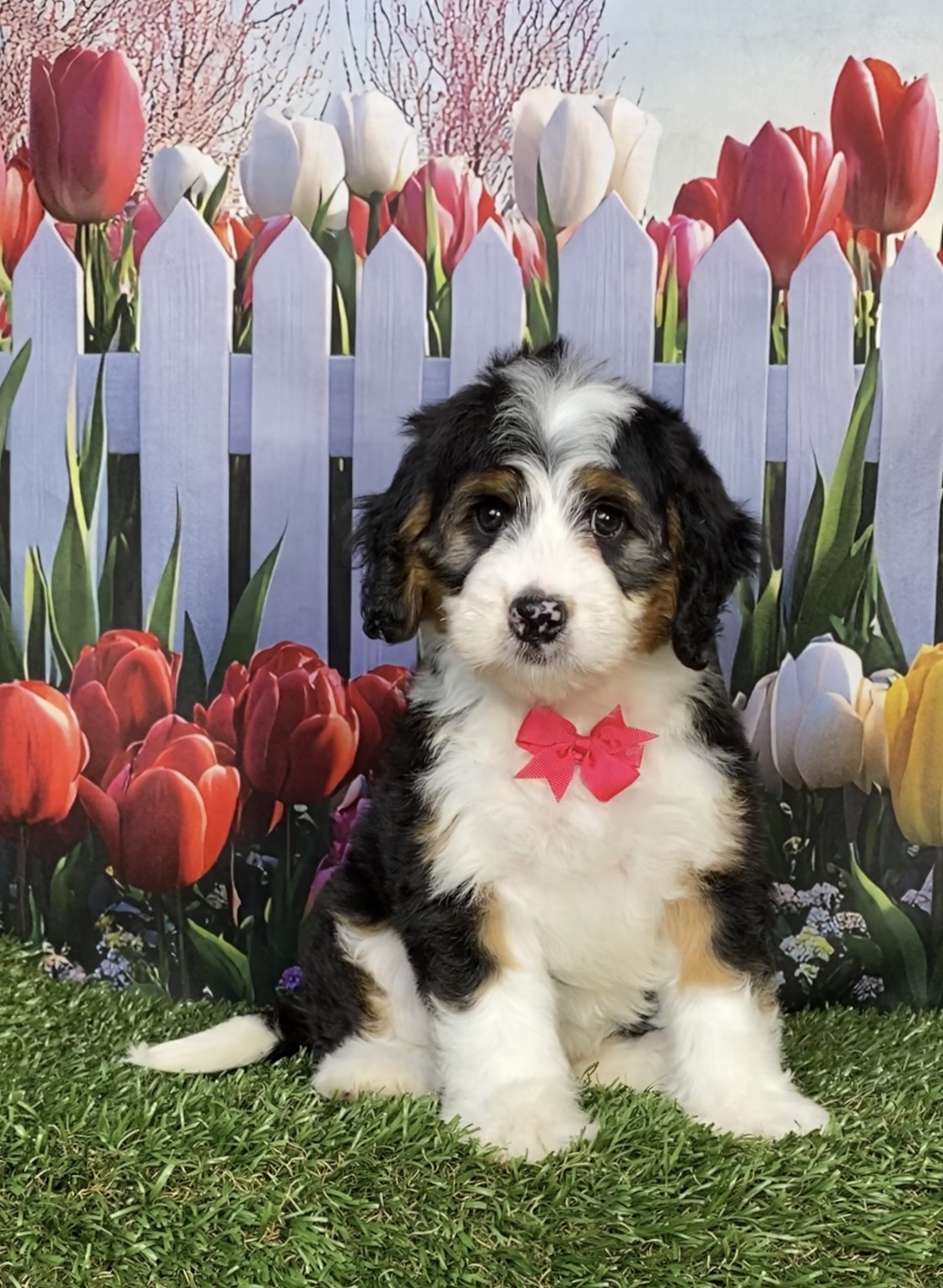 Meet this adorable Mini-Bernedoodle, a tiny bundle of joy with a delightful personality and a coat as soft as a cloud. Blending the intelligence and hypoallergenic traits of a Poodle with the friendly nature and stunning colors of a Bernese Mountain Dog, this pup is the perfect companion for any household. Ms. Izzy promises endless love and happiness to those lucky enough to bring him home.