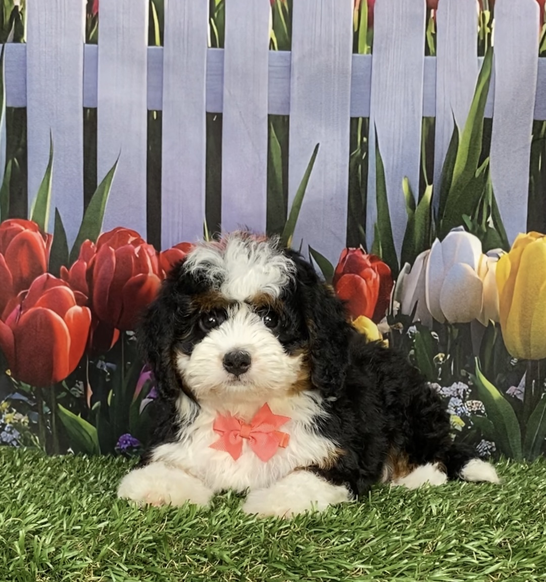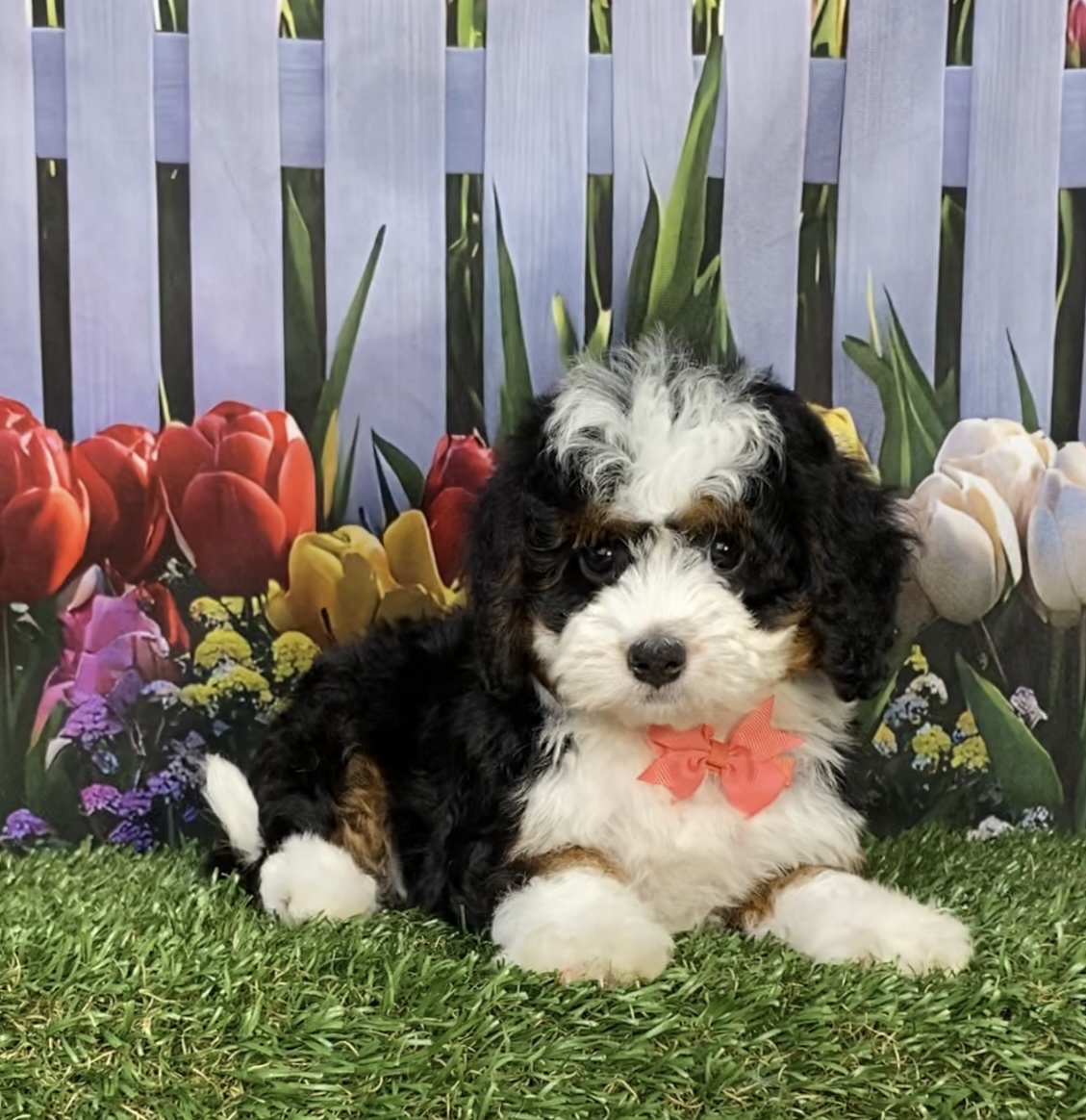 Meet this adorable Mini-Bernedoodle, a tiny bundle of joy with a delightful personality and a coat as soft as a cloud. Blending the intelligence and hypoallergenic traits of a Poodle with the friendly nature and stunning colors of a Bernese Mountain Dog, this pup is the perfect companion for any household. Ms. Jennifer promises endless love and happiness to those lucky enough to bring him home.