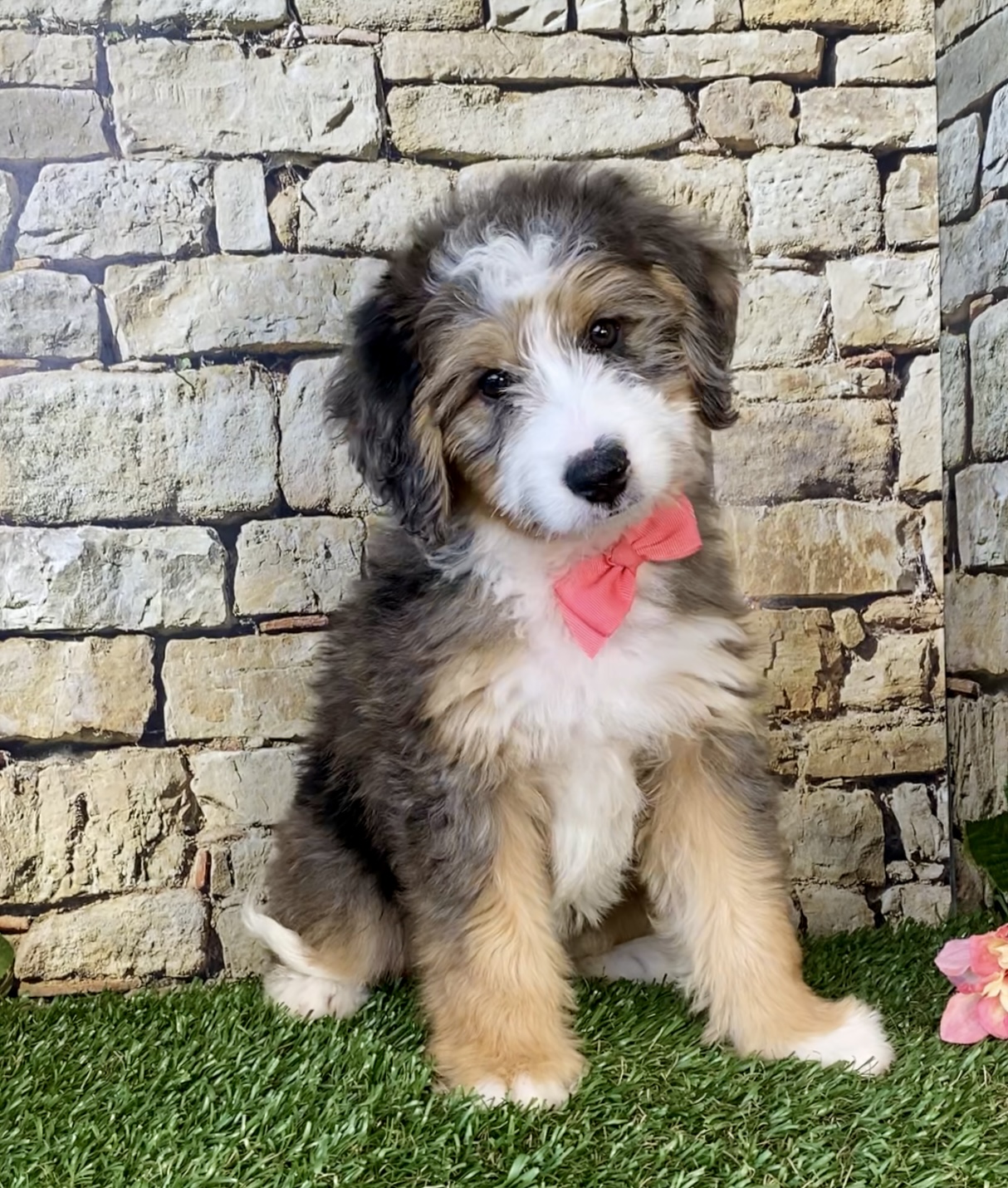 Meet this adorable Mini-Bernedoodle, a tiny bundle of joy with a delightful personality and a coat as soft as a cloud. Blending the intelligence and hypoallergenic traits of a Poodle with the friendly nature and stunning colors of a Bernese Mountain Dog, this pup is the perfect companion for any household. Ms. Kate promises endless love and happiness to those lucky enough to bring him home.