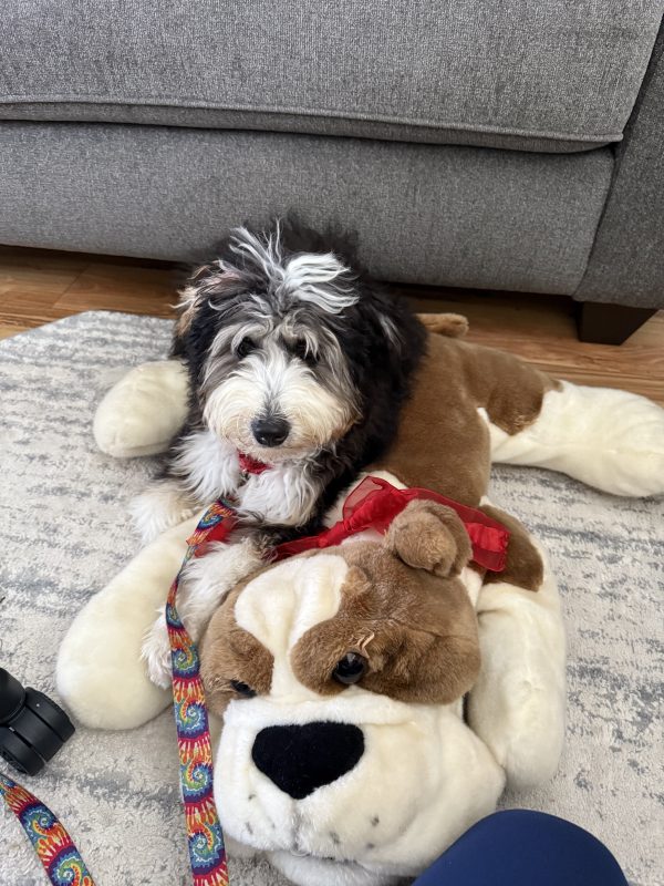 Meet this adorable Mini-Bernedoodle, a tiny bundle of joy with a delightful personality and a coat as soft as a cloud. Blending the intelligence and hypoallergenic traits of a Poodle with the friendly nature and stunning colors of a Bernese Mountain Dog, this pup is the perfect companion for any household. She promises endless love and happiness to those lucky enough to bring her home.