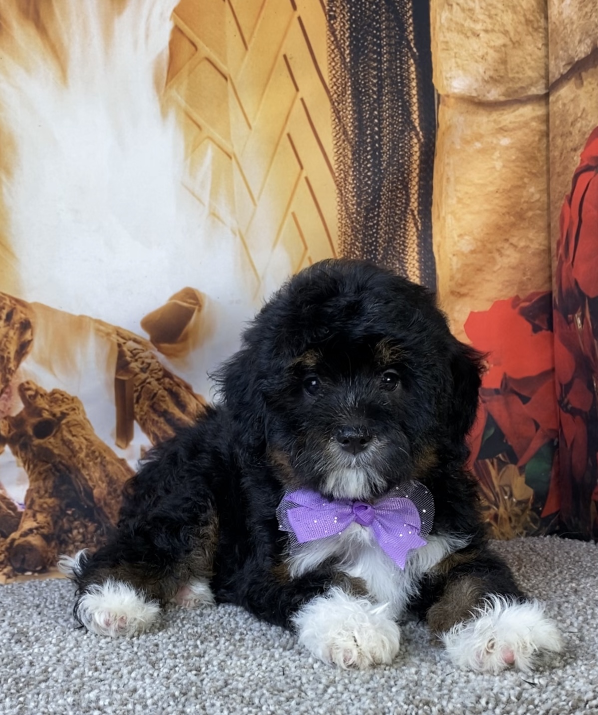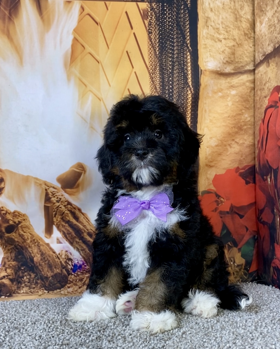 Meet this adorable Mini-Bernedoodle, a tiny bundle of joy with a delightful personality and a coat as soft as a cloud. Blending the intelligence and hypoallergenic traits of a Poodle with the friendly nature and stunning colors of a Bernese Mountain Dog, this pup is the perfect companion for any household. Ms. Mocha promises endless love and happiness to those lucky enough to bring him home.