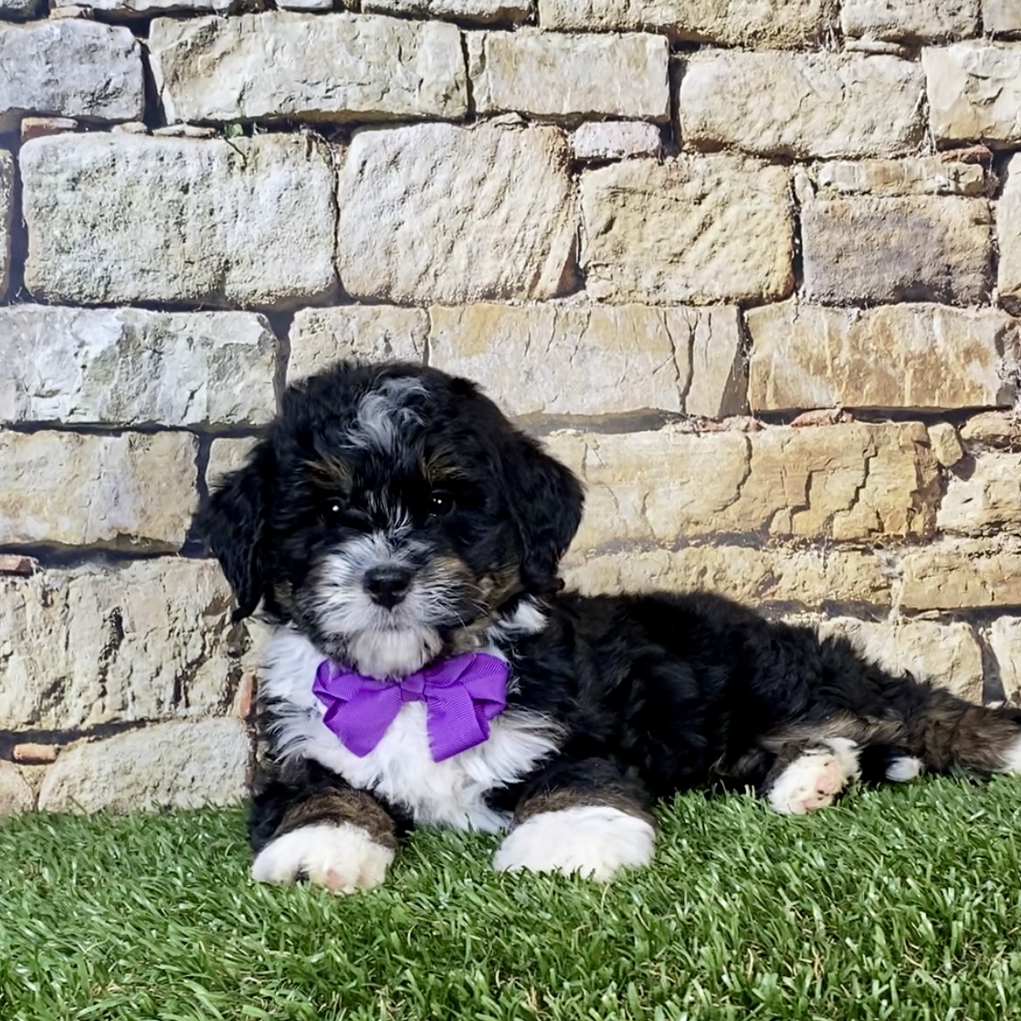 Meet this adorable Mini-Bernedoodle, a tiny bundle of joy with a delightful personality and a coat as soft as a cloud. Blending the intelligence and hypoallergenic traits of a Poodle with the friendly nature and stunning colors of a Bernese Mountain Dog, this pup is the perfect companion for any household. Ms. Nora promises endless love and happiness to those lucky enough to bring him home.