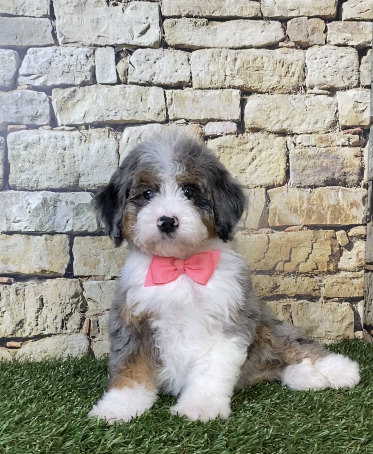 Meet this adorable Mini-Bernedoodle, a tiny bundle of joy with a delightful personality and a coat as soft as a cloud. Blending the intelligence and hypoallergenic traits of a Poodle with the friendly nature and stunning colors of a Bernese Mountain Dog, this pup is the perfect companion for any household. Ms. Oakley promises endless love and happiness to those lucky enough to bring him home.