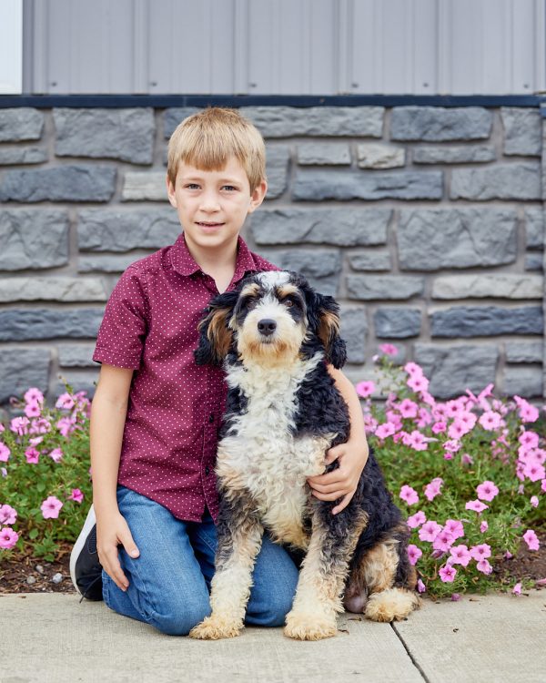 Cassie is a gentle and affectionate Mini-Bernedoodle with a stunning tri-color coat and a heart full of love. She’s not only beautiful but also wonderfully patient and nurturing, making her an amazing mom to her puppies. Cassie’s calm personality and loyal nature shine through in every interaction, and she passes those same loving traits on to her little ones.