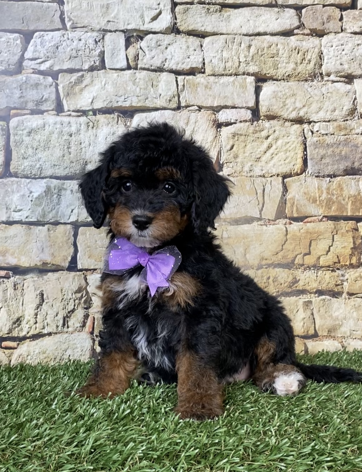 Meet this adorable Mini-Bernedoodle, a tiny bundle of joy with a delightful personality and a coat as soft as a cloud. Blending the intelligence and hypoallergenic traits of a Poodle with the friendly nature and stunning colors of a Bernese Mountain Dog, this pup is the perfect companion for any household. Ms. Sierra promises endless love and happiness to those lucky enough to bring him home.