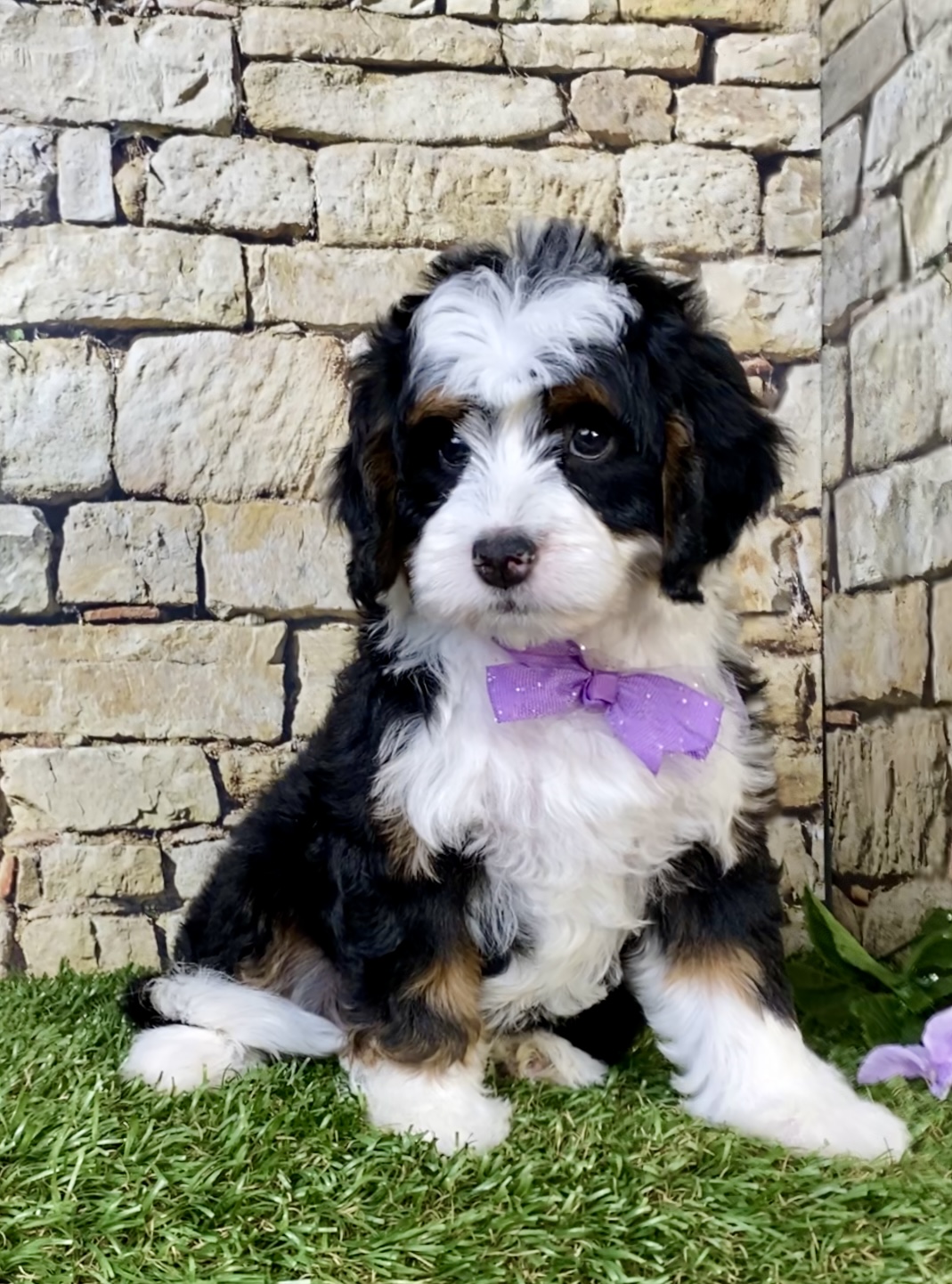 Meet this adorable Mini-Bernedoodle, a tiny bundle of joy with a delightful personality and a coat as soft as a cloud. Blending the intelligence and hypoallergenic traits of a Poodle with the friendly nature and stunning colors of a Bernese Mountain Dog, this pup is the perfect companion for any household. Ms. Tracy promises endless love and happiness to those lucky enough to bring him home.