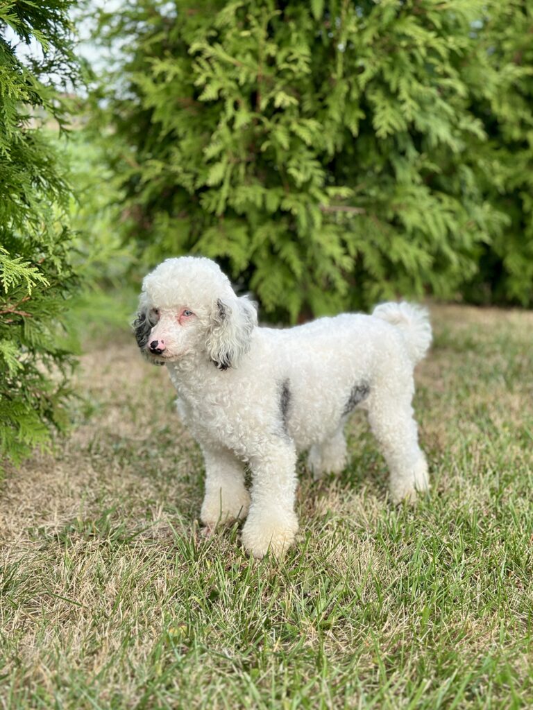 Meet this adorable Mini-Bernedoodle, a tiny bundle of joy with a delightful personality and a coat as soft as a cloud. Blending the intelligence and hypoallergenic traits of a Poodle with the friendly nature and stunning colors of a Bernese Mountain Dog, this pup is the perfect companion for any household. Ms. Wanda promises endless love and happiness to those lucky enough to bring him home.