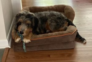 Here is HONDO this morning in his bed playing with one of his favorite toys. Thank you again!