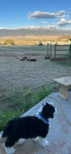 This is where Rolo lives now. Those are the Sangre de Cristo mountains ⛰️ at sunset. In the San Luis Valley. He IS a special dog, so mellow and low-key and smart! Thank you for getting him started🙏