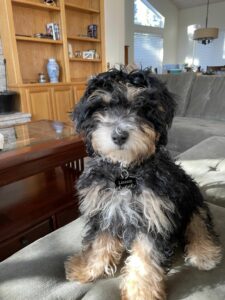 Just wanted to let you know that Miles (Kyle) is doing great. So much fun and has been so good. Has been sleeping in his crate since his first night. What a joy to have. He is just perfect!!