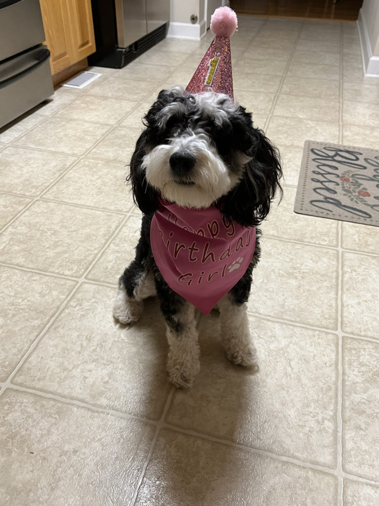 Hi! Just wanted you to see our little girl Izzy on her first birthday!! We got her from you last year. You had named her Ocean at the time.