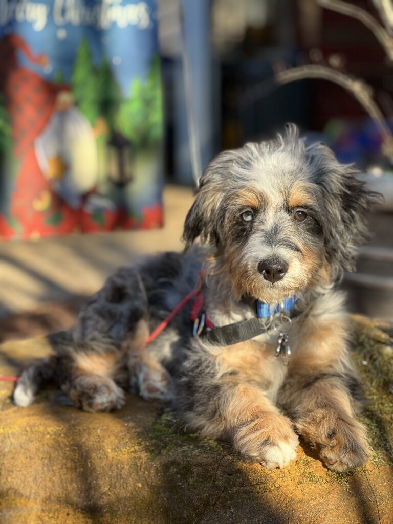 We adopted Ollie (aka Socks). 8/24/2022., birth date. He is the absolute sweetest. Now just a bit over 4 months he has learned so much. He has learned to ring the bells for the potty which has been a great thing. No accidents except for the occasional over-excitement. He is learning new tricks every day, shake and lay. … more and working on new things. He loves car rides and trips to Home Depot, Lowes, and Tractor Supply. He loves people and especially kids… Ours are grown. He is the perfect fit for our empty nest. We love him so much. Thank you Elton and family you have given us our new fur baby that we will love forever.