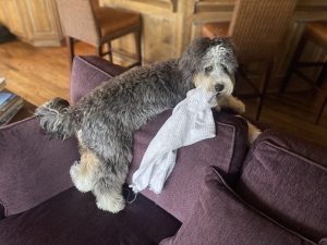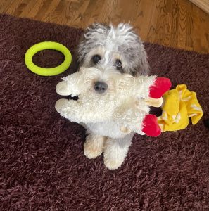We are enjoying our Mini-Bernedoodle every day. Originally named Mr. Oliver, Barney is now nine months old, fully potty trained, and improving on all of his obedience skills. He’s extremely smart, too!