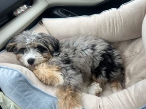 Bella, previously Zara, turns one today. She is the perfect dog, and we love her so much. She has such a loving temperament and loves kids and other dogs. She is silly and funny, and the addition to our family only Santa knew we needed! We get compliments on her beauty and personality everywhere we go. She loves soccer games and snuggles. Eldon helped us pick her, and his advice was right on. He raises great pups. Don’t hesitate to add a cuddly member to your family from this breeder.