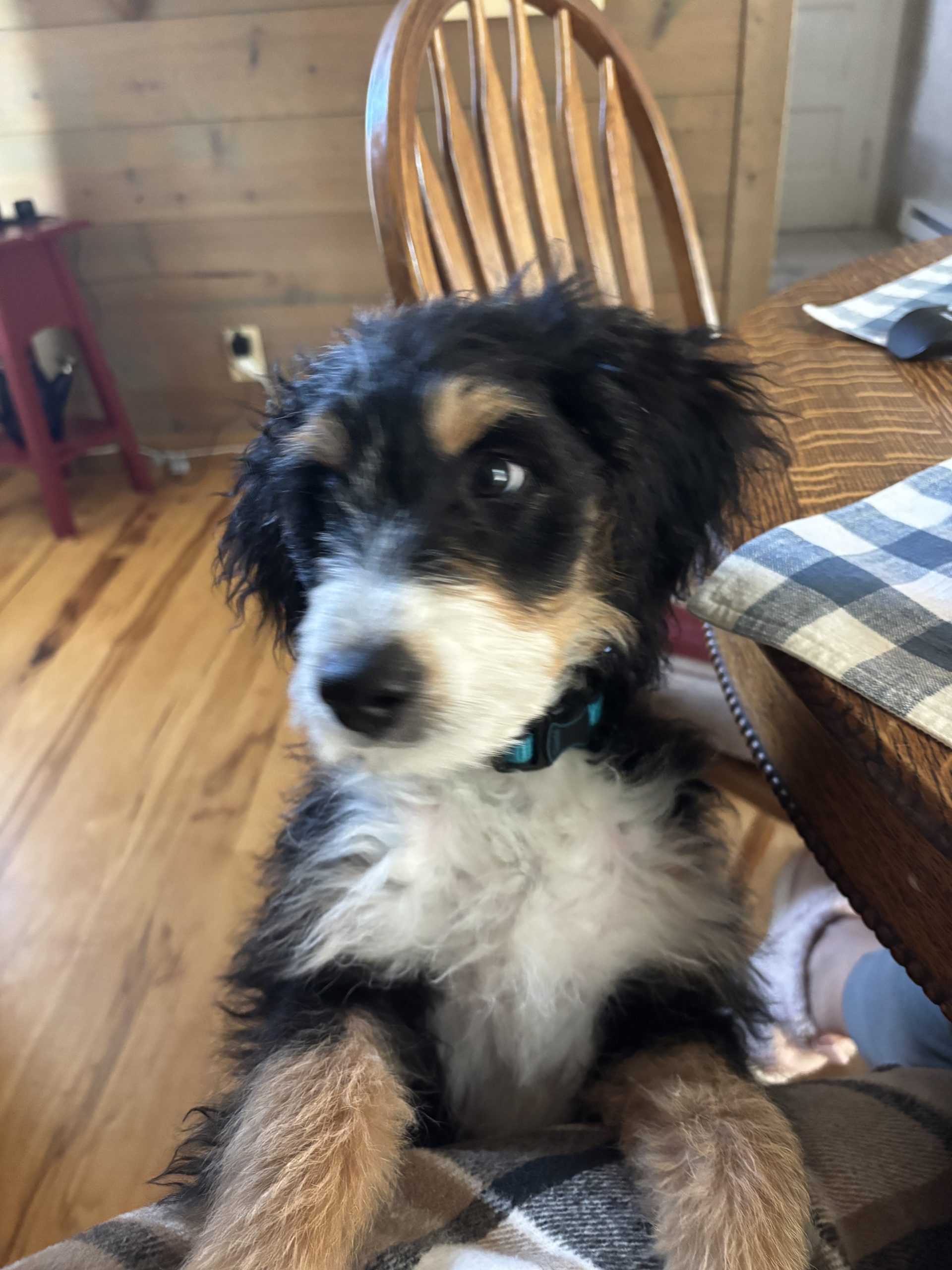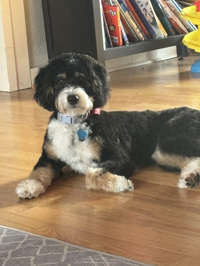 We adore our mini Bernedoodle. She is the best companion. Our older dog and young cat all enjoy her energy and playfulness. She is smart and loving. We had a very nice experience adopting Sadie. She was delivered quickly and she had been well taken care of. Thank you!