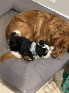 Hi Elton and Laura. June (now called Phoebe) is very happy in her new home and loves her big brother Winston. ???? She is a delightful puppy, very smart and sweet and we love her.  ???? She checked out with perfect health at the vet. Thank you, best, Kim