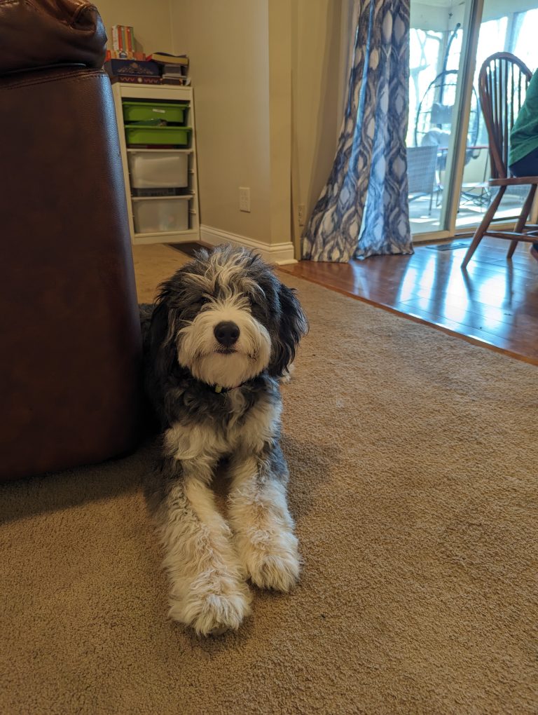 We got Sunny at the end of June and he just lights up our life! He loves everyone, loves to play and is the sweetest boy! He’s been easy to train too! He loves looking out the window watching the birds and Squirrels in the backyard. He is just over 40lbs.