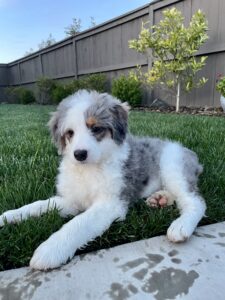 Bennie arrived yesterday and he is adorable, loving, and smart! He has already learned sit, down, crate, and almost has “shake” down! He is not shy or nervous about anything. He is going potty outside! He adore children and loves to lay on my feet. Slept in his dog bed all night and didn’t whimper at all. Very secure pup! Transport was smooth and it is clear that this puppy was well cared for and socialized before her arrived!!! Love this puppy!!!