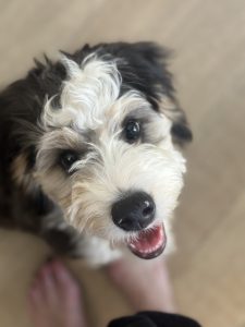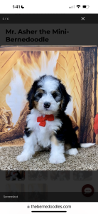 We had such an easy going, positive experience with Elton as we found our perfect little Bernedoodle, George (formerly Mr. Asher). Elton answered all of our questions and helped us organize the transfer of George to his wonderful trainer at Puppy Intelligence, which we highly recommend. George has such a wonderful temperament and disposition. He’s a loving, cuddly, playful puppy. We know that Elton and his family take wonderful care of the puppies – socializing them, getting the vet care they need, and making the transition to us as easy and less traumatic as possible. No airplanes!